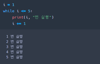 - while 문에서는 뒤에 작성한 조건문이 True일 경우, 코드 블록을 계속 반복하여 수행합니다.