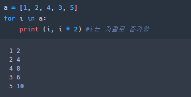 - i는 매번 수행될 때마다, a의 다음 요소로 변경됨