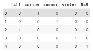 pd.get_dummies(season['season'], dummy_na=True)