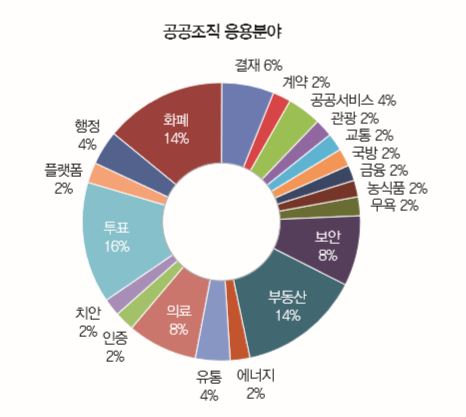 정부(중앙, 지방) 혹은 국가 차원에서 공공 행정 정보 및 국민 신원 관리, 자산거래 내역 공증, 복지서비스 제공 등에 적극적 도입을 진행한다. 신기술이 갖는 불확실성과 도입 장벽 등을 제거하기 위해 국가 차원의 제도 개선, 성공 사례 확보, 기업 지원 및 협력 등을 다방면으로 진행하고 있다. 응용된 분야를 보면 신원확인, 의료정보 제공, 투표, 치안, 공공서비스 제공, 자산이력 추적, 교통 및 전력 등 공공 인프라 관리에 적극적 활용을 시도하고 있다.