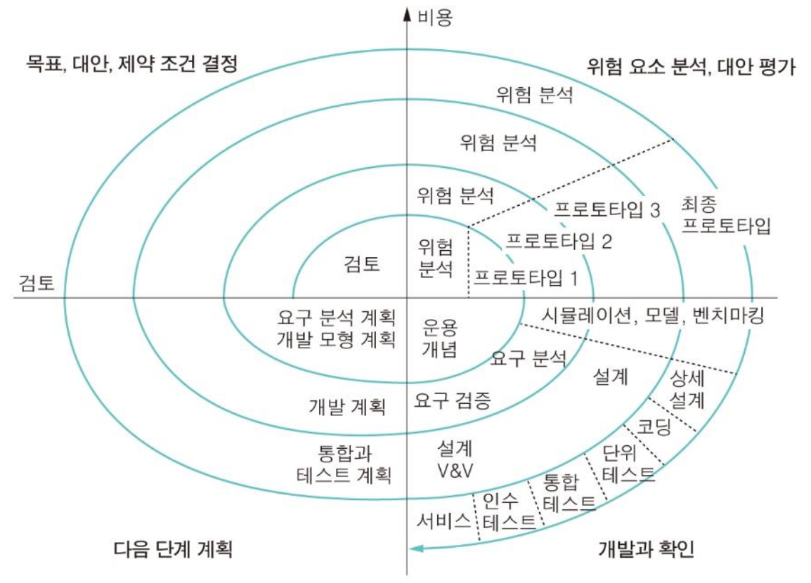 - 전체 생명주기에 위험 분석과 프로토타이핑을 사용하여 위험을 최소화하려는 목적을 가짐