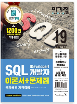 📝노란 책만큼 많이 보는 교재! 이 책의 가장 큰 장점은 아무래도 이론이 함께 정리되어있다는 점입니다. SQL에 대한 기본지식이 없는 상태에서 문제를 풀려면 정말 막막하기 때문에 시험에 나오는 이론 정리를 한 번 하고 뒤에 있는 모의고사와 실전문제를 푸는 것도 도움이 될 것 같습니다.